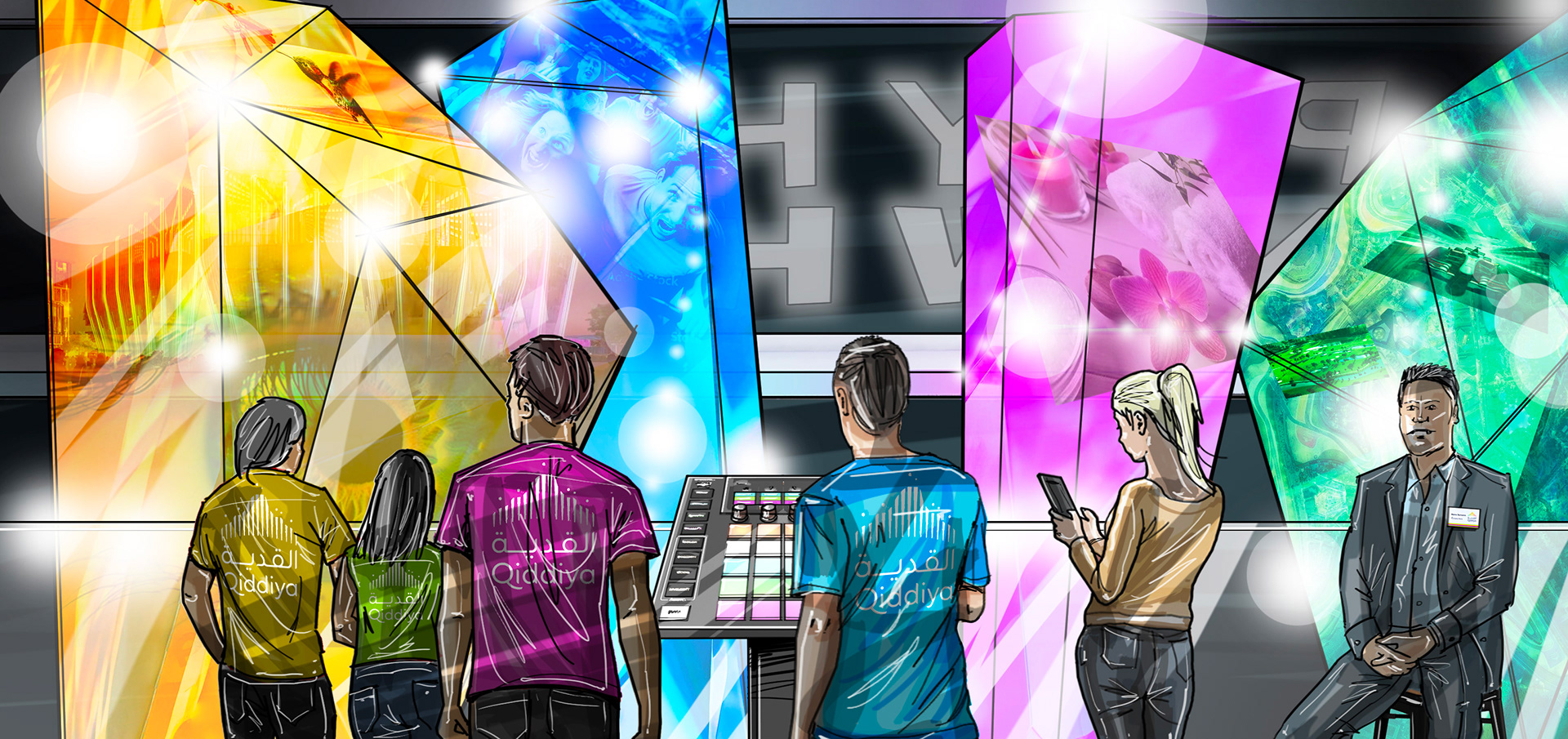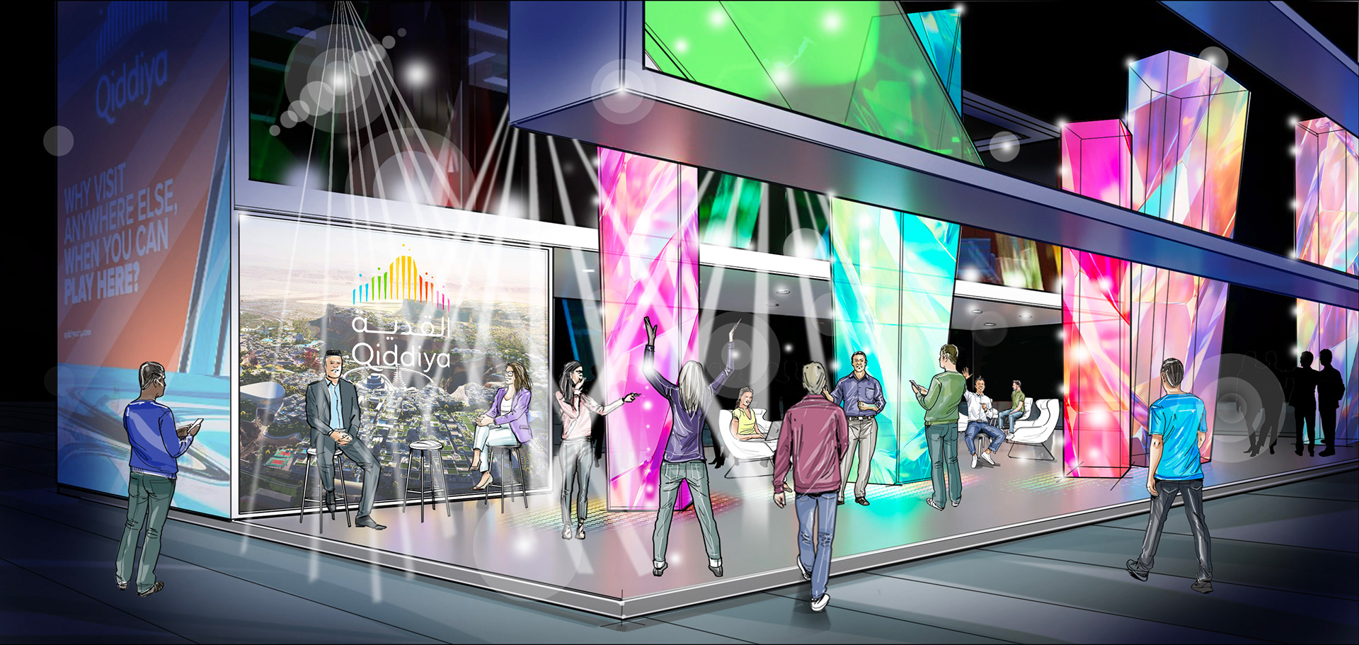 The following concepts were produced for an immersive, experiential b2b environment, to attract business investors within Saudi itself. Produced for the fine folk of 2LK Farnham, Surrey.