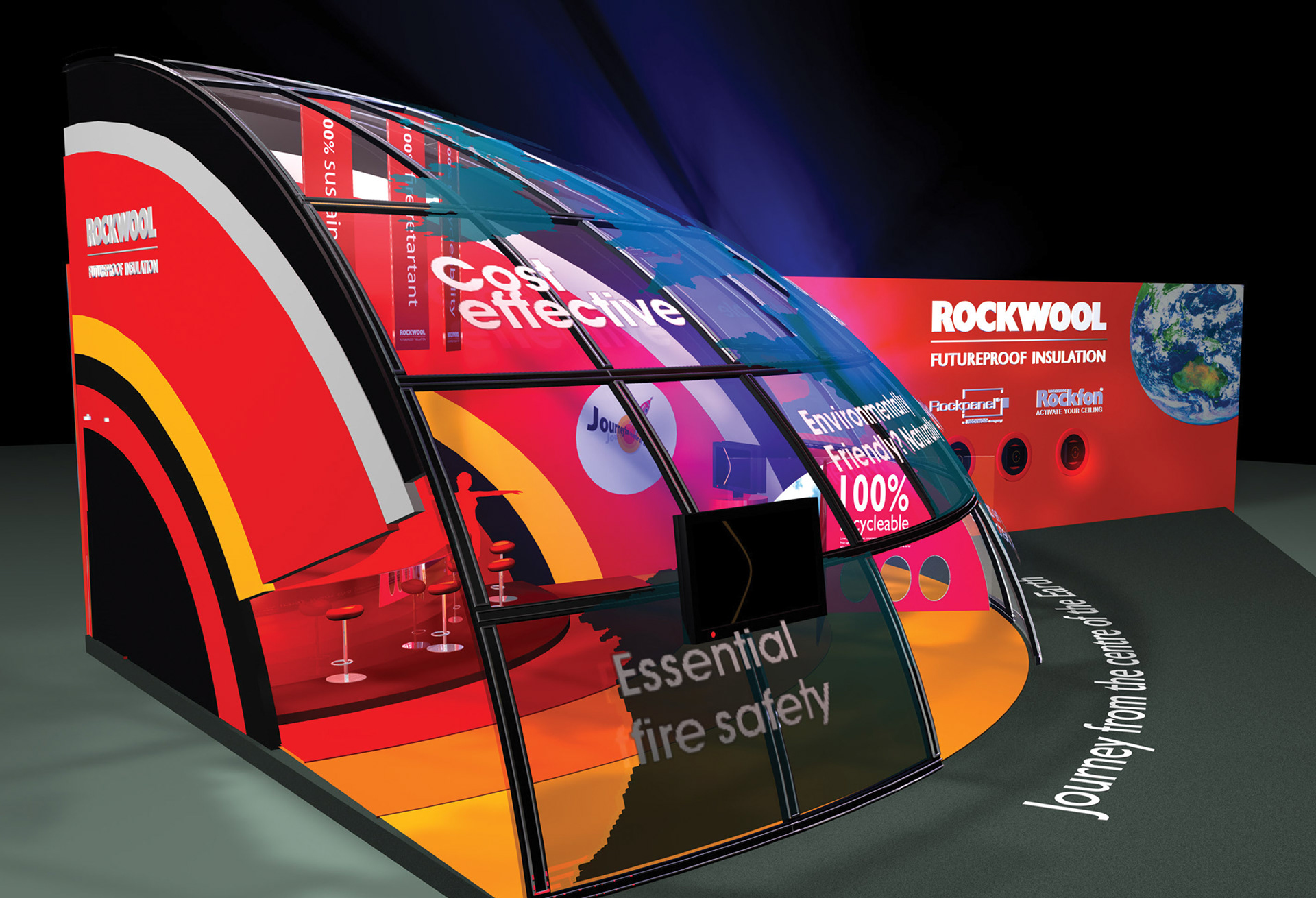 Journey from the centre of the earth This world-class heat, fire and sound insulation board comes from volcanoes. The event was focussed around my proposition ‘Journey from the centre of the earth’, a twist on the Jules Verne story from 1864, and featured a huge, half-globe sunk into the floor that told the Rockwool story. Retro-dressed stewardesses with branded give-aways gained a lot of attention and PR. We also designed and developed an iPad video game of the same name where visitors could win prizes. Marketing channels - Exhibition design.